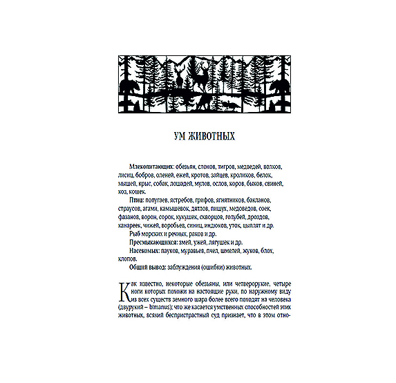 Книга посвящена изучению психологической природы инстинктов животных. В предисловии и комментариях к тексту автор анализирует наличие разума и сознания у животных, утверждая, что у них развита высокая психическая организация, которую люди долго времени считали своим исключительным правом.